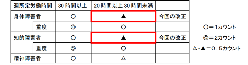 ○常用雇用労働者の総数や実雇用障害者数の計算の際に、短時間労働者を0.5人としてカウント